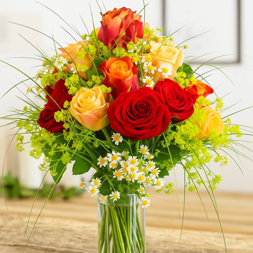 Eine Alternative auf Augenhöhe zu diesem Rosenstrauß ist der in Rot und Weiß gehaltene