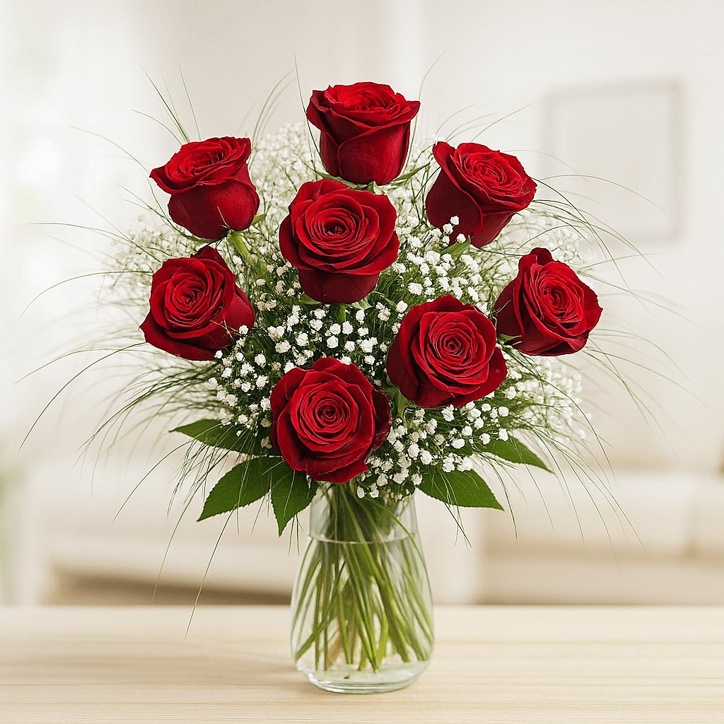 - 10 großblütige rote Edelrosen (Sie können auch mehr auswählen!)