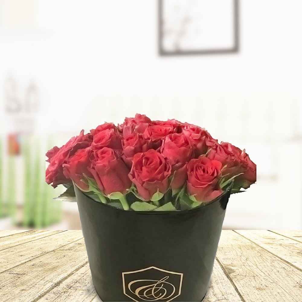 Die Rosen und die Box werden separat geliefert, da die Rosen nach Zustellung entsprechend der mitgelieferten Pfleganleitung frisch angeschnitten werden müssen. Wir lassen die Rosen daher etwas länger, so dass einem fachgerechten frischen Anschnitt nichts im Wege steht und die Länge beliebig angepasst werden kann.
