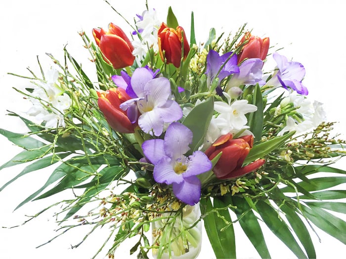 Dieser Frühlingsblumenstrauß beinhaltet beispielsweise die folgenden Blumen:
